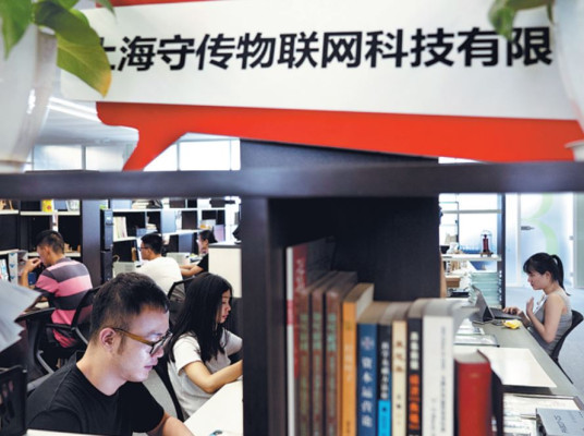 Employees work at Shanghai Shouchuan Internet of Things Co, a startup in Zhangjiang Science City. [Photo by Gao Erqiang/China Daily] |
